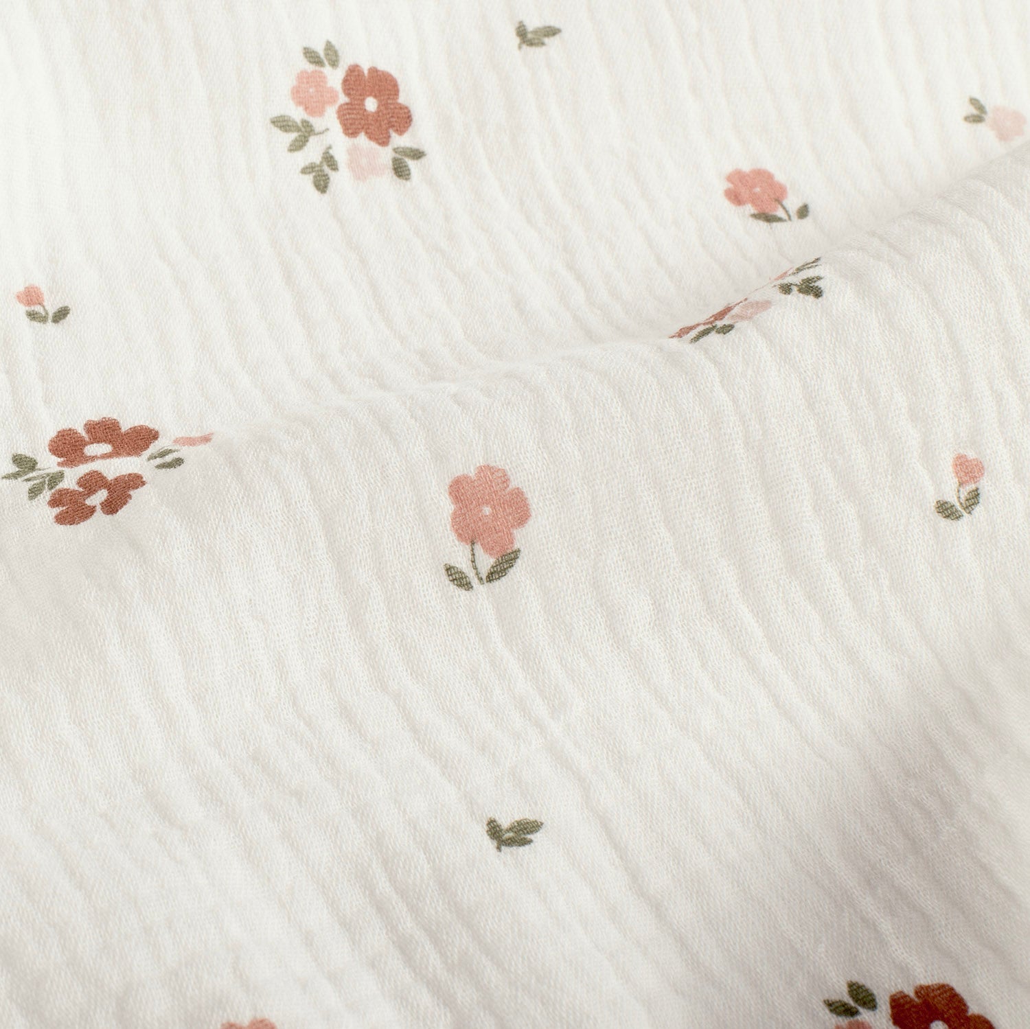 Der Musselinstoff Blumen Wollweiß überzeugt durch seine weiche Haptik und das liebevoll gestaltete Wal-Motiv. Er besteht aus 100 % Baumwolle, ist atmungsaktiv und angenehm auf der Haut. Damit eignet sich dieser Stoff besonders gut für Baby- und Kinderkleidung, leichte Sommermode sowie Heimtextilien.